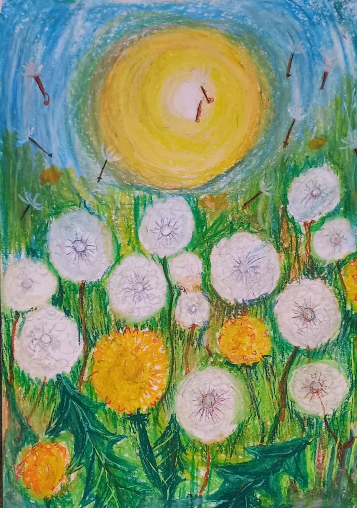 Milana continues her art studies through her relocated art school, now based in Dnipro.